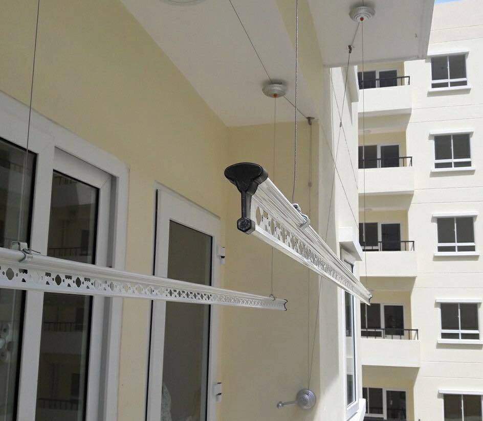 - Thanh phơi: Sử dụng chất liệu hợp kim nhôm magie có độ dày 0.3mm, dài 2,4m được sơn tĩnh điện anot, thiết kế hình dầm cầu bo tròn cạnh, với khả năng treo được tới 80 móc treo quần áo, hai thanh phơi hoạt động lên xuống độc lập